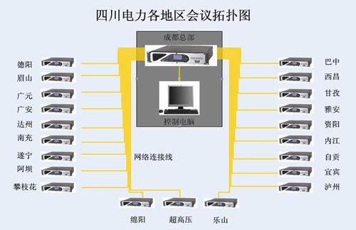 该项目包含四川省21个市州国家电网应急指挥中心会议室,各地通过此智能会议系统能够迅速与其他市州进行紧急情况的调度和处理,同时也能进行多方远程视频会议,实现了会议智能化。该项目特点是21个地方分别能够独立作为应急指挥中心使用,又能通过远程视频会议实现联合会议,同时能够实现不同地方的调度功能和监控。